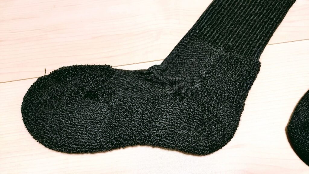 耐久性についても申し分ありません。数回の洗濯ではまったくへたることなく、すでに10回以上着用していますが、履き心地やクッション性はほとんど変わらず、初回の感触がしっかりと残っています。ゴムの伸びやパイルの潰れも今のところ見られず、耐久性の高さを実感しています。